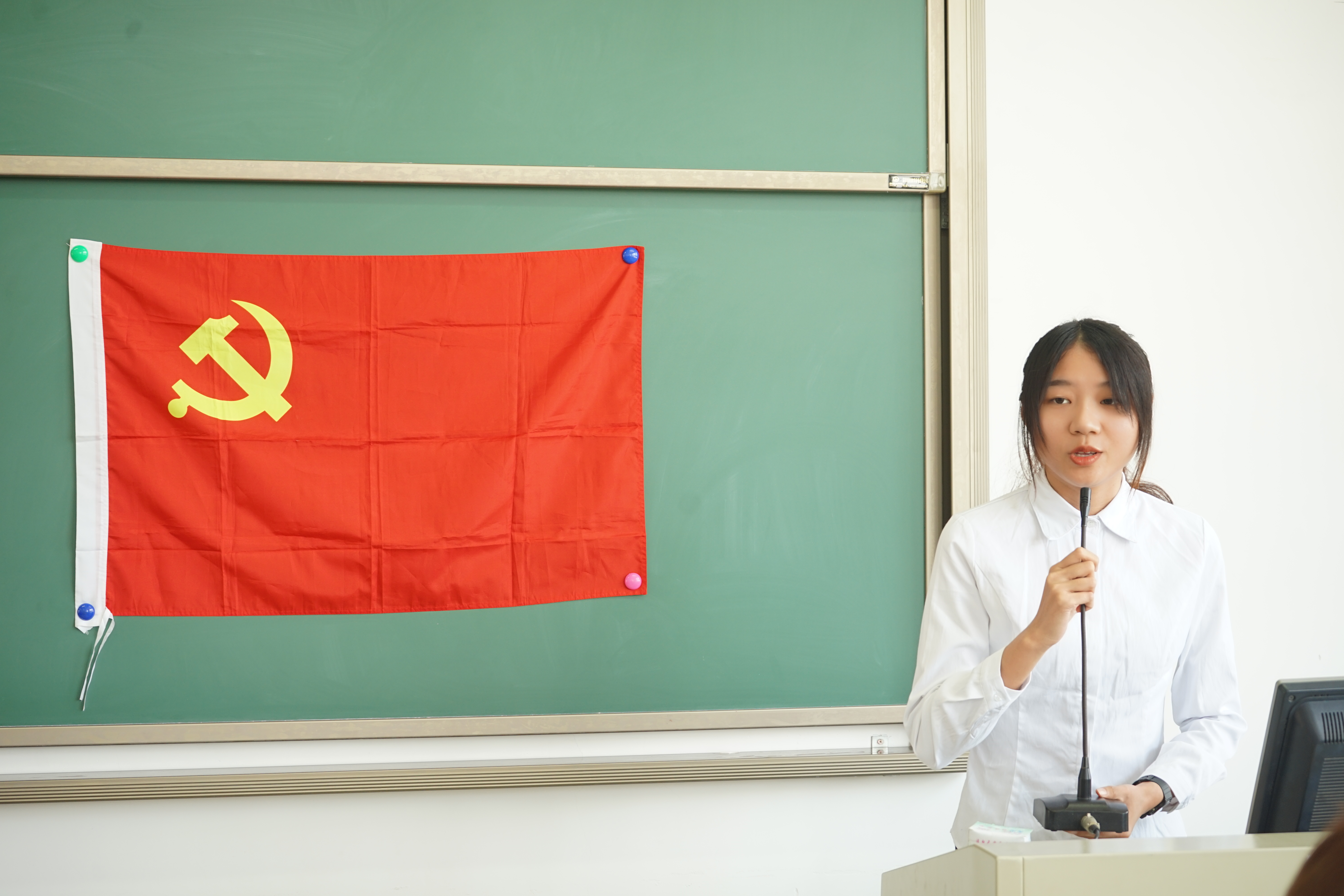 陈晓玲对黄田青等24名同志的加入表示热烈的欢迎,并对大会进行了总结。希望各位党员能加强自身党性修养,做到思想与行动保持高度一致,在平时的学习、工作、生活中能起先锋模范作用。在座的各位党员有一部分已经在工作岗位上,有一部分即将到工作岗位上实习,希望各位党员能将所学知识应用到实际工作中,在工作岗位上发光,以优异成绩献礼建党100周年。