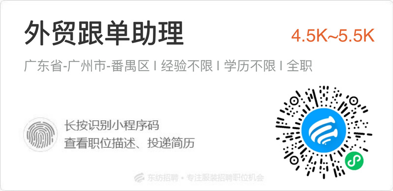 招聘岗位: 外贸跟单助理(2名)