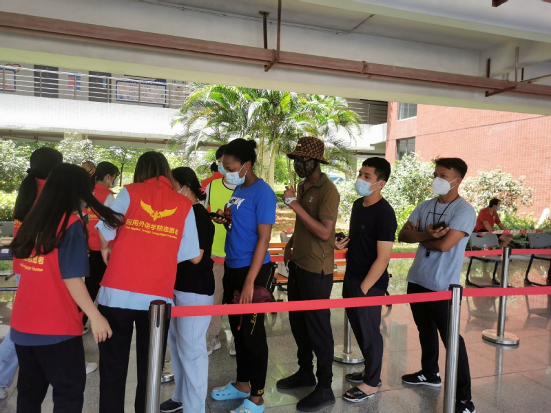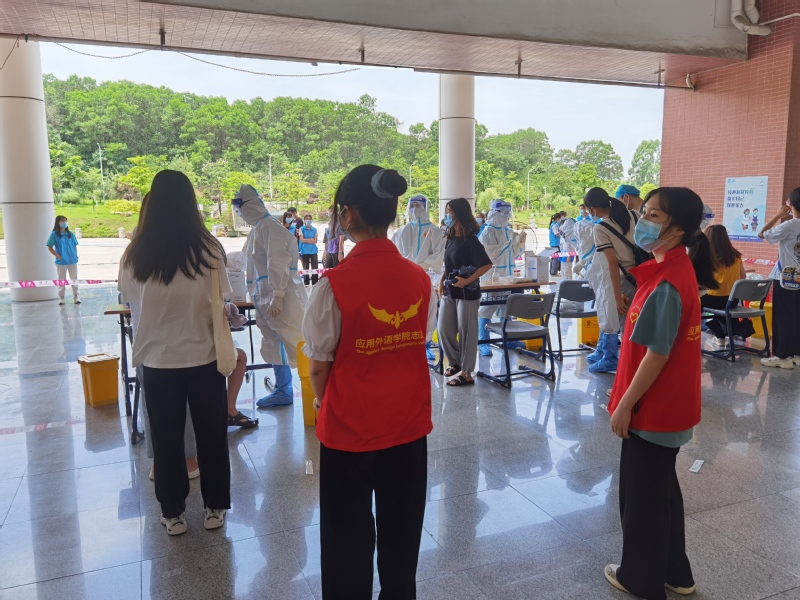 为了响应国家号召,加大疫情的排查和防控力度,6月4日下午,应用外语学院青协分会以及各学院青协协助校领导和广州市第三人民医院于一区教学楼架空层对全校师生进行核酸检测。