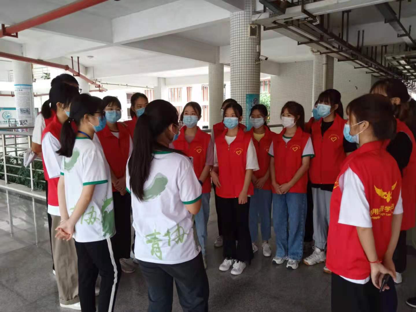 顾及到这次打疫苗人数过多,担心志愿者对于工作流程不熟悉,应用外语学院青协分会负责人提前集合志愿者们,告知志愿者们在岗位的一些注意事项。在志愿者们集结完、换上马甲、等待工作安排的同时,医护工作者、保安也到场,开始了前期工作的准备。志愿者们也已经整装待发,做好充分准备迎接这次的疫苗大战。