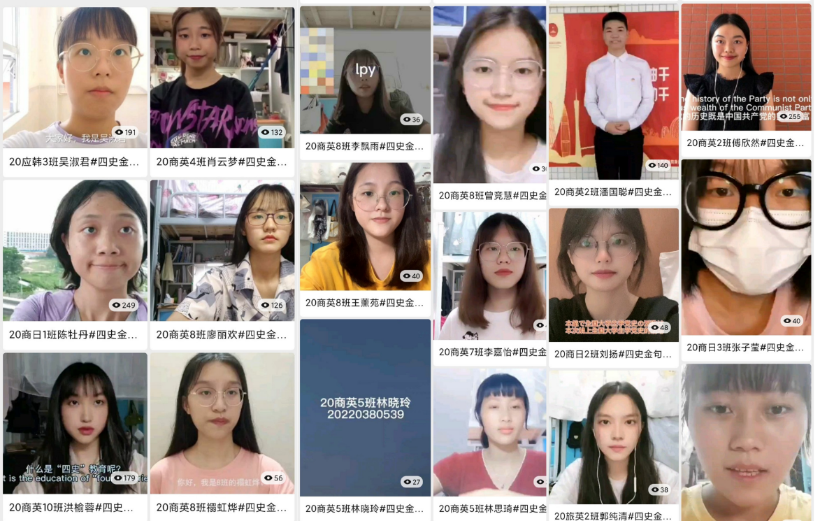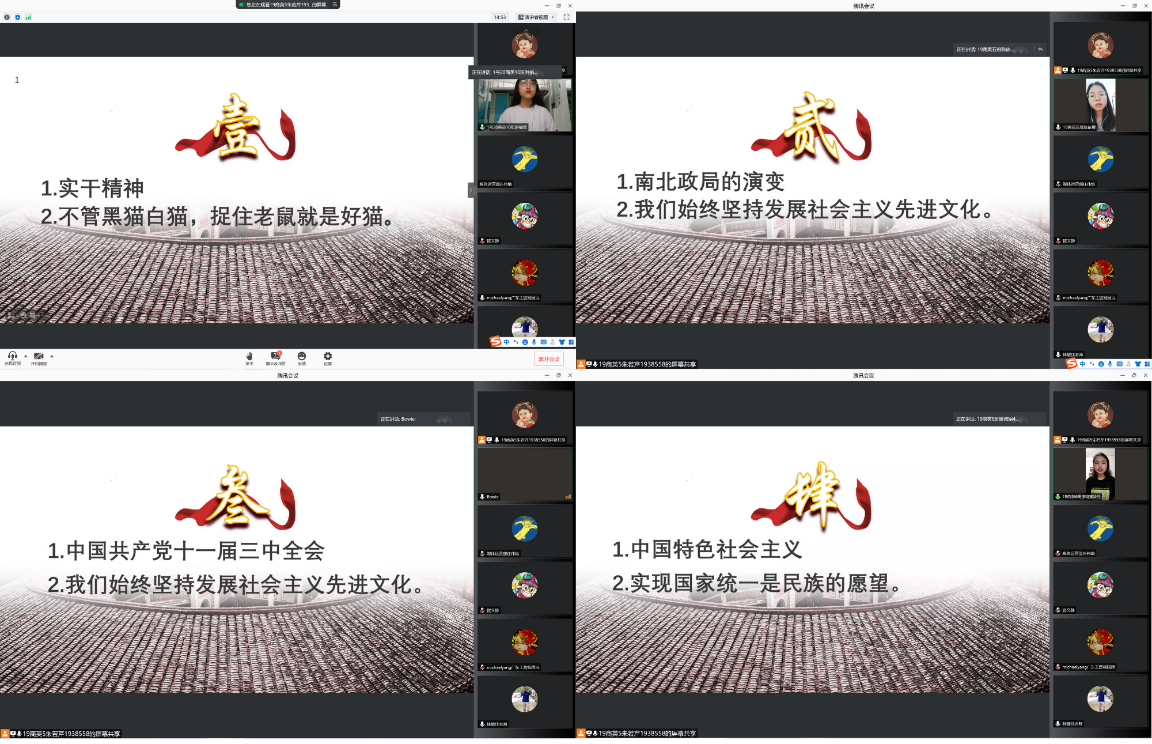 初赛,参赛选手从提供的“四史”学习资料中挑选2个词汇及2句语句翻译成英、日、韩任意一种语言,并且录制一段1-2分钟的“四史”精神学习感悟视频提交到指定邮箱;活动一经发出,同学们积极响应投递视频,经过工作人员在上百份作品中筛选,最终有13名参赛者晋级决赛。