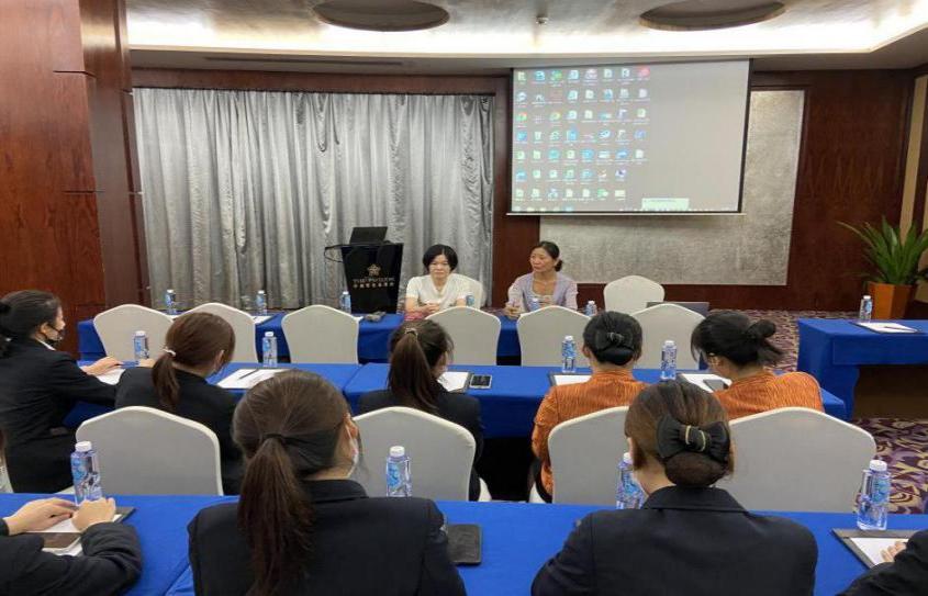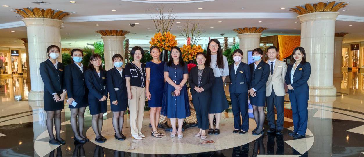 深圳中洲圣廷苑酒店是旅游英语专业省级现代学徒制联合培养学生的单位。彭院长带教师队伍于7月21日到达酒店交流深度合作事宜,并看望19级旅游英语1班现代学徒制实习学生。召集学生开展座谈会,询问学生实习情况,了解到学生的收获及遇到的困难,并对学生就实习的心理、态度和专业技能进行了指导,鼓励学生好好利用实习机会提升自己,增强就业能力。