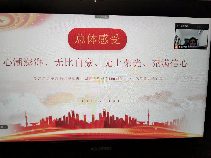 7月20日晚,第一次暑假集中学习如期在腾讯会议上举行。会议由支部书记彭枚芳主持。会议先后首、学习习近平总书记在庆祝中国共产党成立100周年大会上的重要讲话、习近平《论中国共产党历史》---讲好中国共产党的故事以及2020年6月27日给复旦大学青年师生党员回信。在回信中,习近平总书记指出:“一百年前,陈望道同志翻译了首个中文全译本《共产党宣言》,为引导大批有志之士树立共产主义远大理想、投身民族解放振兴事业发挥了重要作用。”他强调:“积极宣讲老校长陈望道同志追寻真理的故事,传播马克思主义理论,是一件很有意义的事情。希望你们坚持做下去、做得更好”,并多次提及“真理的味道非常甜”,陈望道翻译《共产党宣言》的故事等。