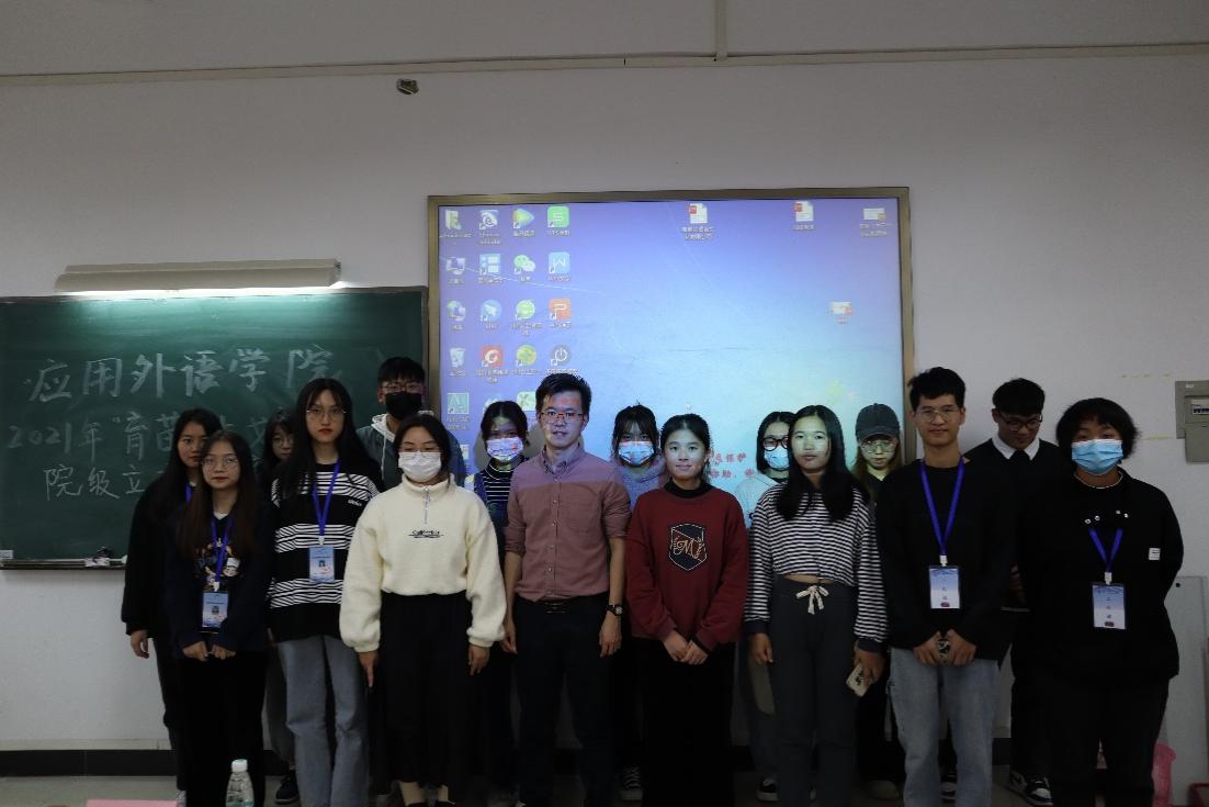 为培养和储备一批优秀科技创新人才,加强学生创新创业项目培育,近日,应用外语学院于白云校区明德楼1区606开展2021年“育苗计划”创新创业作品院级立项答辩会。应用外语学院本学期共有30个项目申请院级创新创业项目立项,其中共有10个项目进入本轮答辩环节。