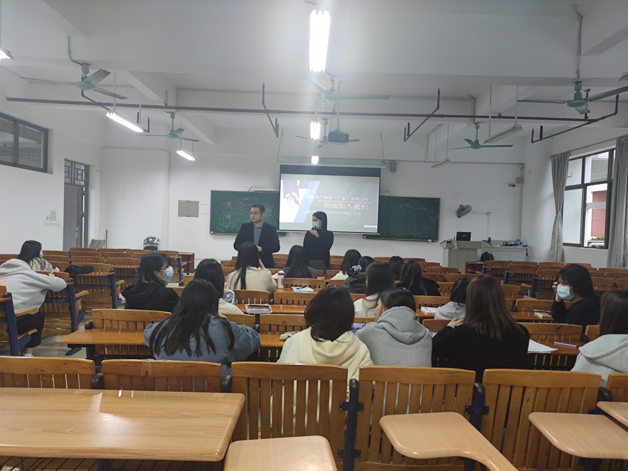 为进一步加强毕业生就业意识,引导毕业生了解就业形势,树立正确的就业观和择业观,12月15日,应用外语学院携手汇丰环球客户服务(广东)有限公司在明德楼2-304举办企业招聘宣讲会。汇丰环球客户服务有限公司人力资源部郭军山经理、外语学院辅导员林婉芳以及2022届商务英语、商务日语专业毕业生参加大会,