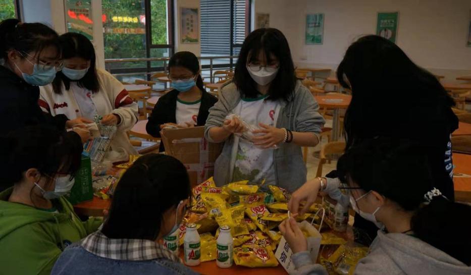 人生有梦想,总是执着去远方。杨柳依依三月,有那么一群年轻人,青春风发,努力挥洒汗水,撒播理想的种子。升本考试来临之际,为鼓励留校升本同学,4月3日,应用外语学院青协分会举办“洒下爱心,阳光圆梦”主题送温暖活动,本次活动有应用外语学院青协分会会长谭璇老师和25名外青成员参与。当天,外青成员早早到达集合地点,进行礼物包装。