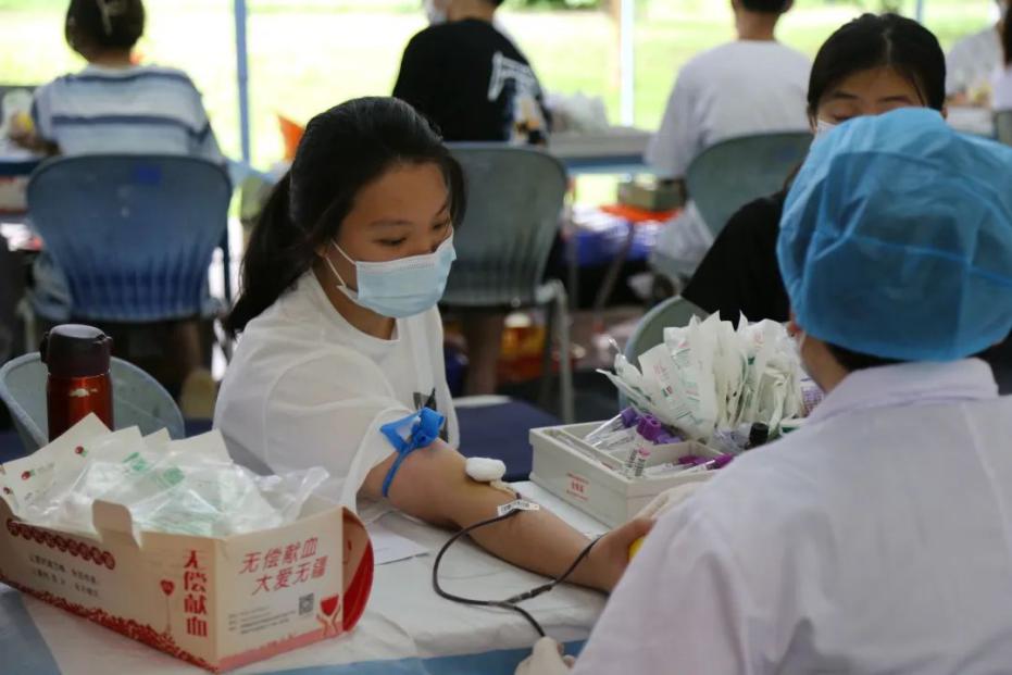活动当天风雨不断,但这并不能阻挡同学们的献血热情。本次活动现场分为八个区域:测温填表区、血压区、信息录入区、验血区、补贴区、休息、献血区以及等候区。在志愿者们的带领下,同学们有序地配合工作人员进行身体检查、抽取血液、化验血型等各个流程。在工作人员的讲解和鼓励下,不少同学们也克服恐惧,力所能及献出鲜血。处理创口之后,由志愿者带到休息区,为献血者们提供糖水和面包补充能量,同时询问并观察献血者身体恢复情况,并为他们颁发献血证。将这份澎湃的爱心热潮在每一位学子心中传递,让整个献血活动有一点紧张又充满了温馨。
