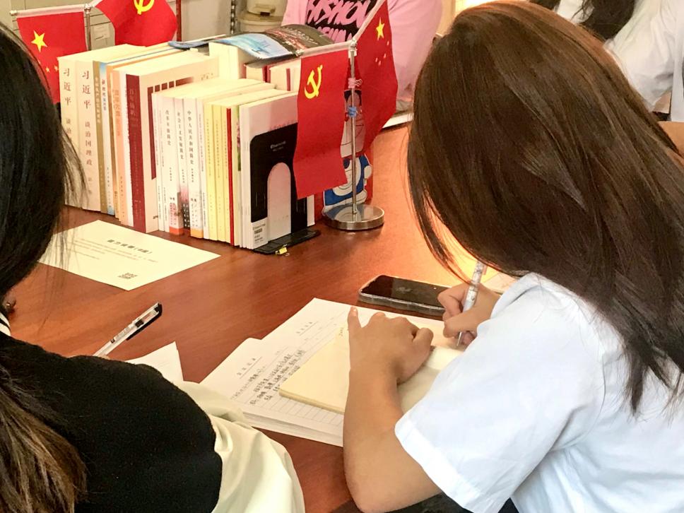 学生党员认真做好会议记录