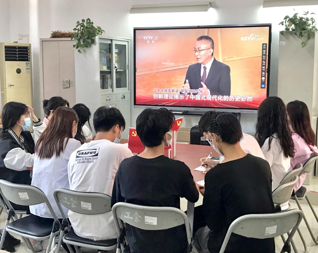 10月16日至10月22日,历史的聚焦再一次定格在北京,定格在人民大会堂。为激发学生党员为梦想不懈奋斗的澎湃力量,让青春在全面建设社会主义现代化国家的火热实践中绽放绚丽之花,10月22日,应用外语学院党群服务中心组织学生党员在党员活动室和宿舍同步收看党的二十大闭幕会。