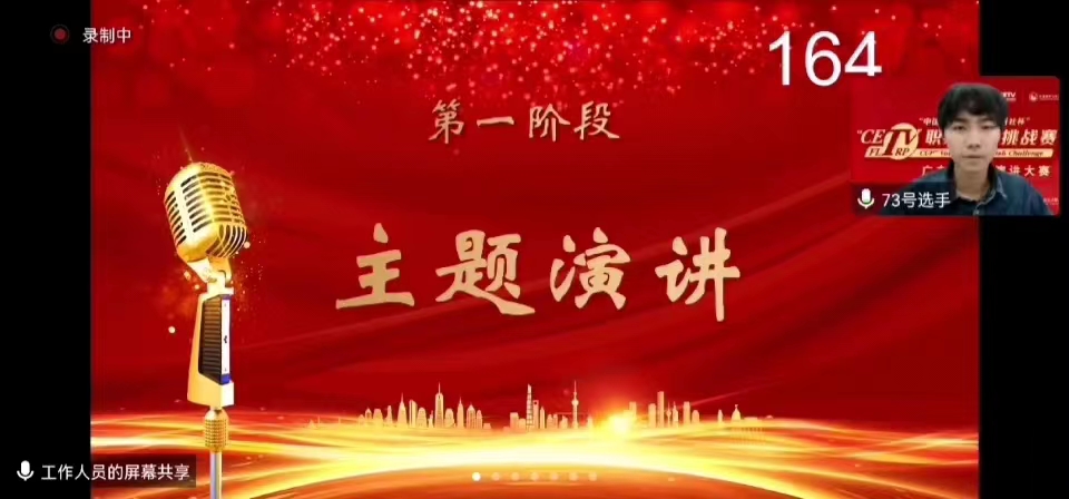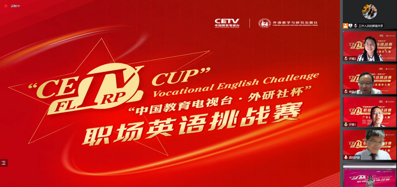 2022年11月12日,因疫情改为线上举办的“中国教育电视台·外研社杯” 职场英语挑战赛之广东省英语演讲比赛圆满结束。经过前期层层选拔,全省高职院校100多名选手参与了该比赛,应用外语学院两名学子(22级商英4班缪一鸣、21级商英1班顾怨坪)经过第一阶段的定题演讲以及第二阶段的即兴演讲角逐,最后脱颖而出并喜获佳绩: