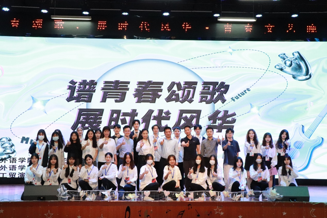 为了丰富校园文化生活,营造至善至美的校园文化氛围,激发同学们热爱艺术、展露才华的积极与热情,5月11日晚,由应用外语学院团委学生会主办的“谱青春颂歌,展时代风华”文艺晚会在白云校区演艺厅顺利举行。学校党委委员、副校长唐毓秋、应用外语学院党总支书记成海涛、学院党总支副书记罗春科、学工办主任林耀佳、陈文敏老师以及学院学工团队辅导员老师们参加了此次活动。