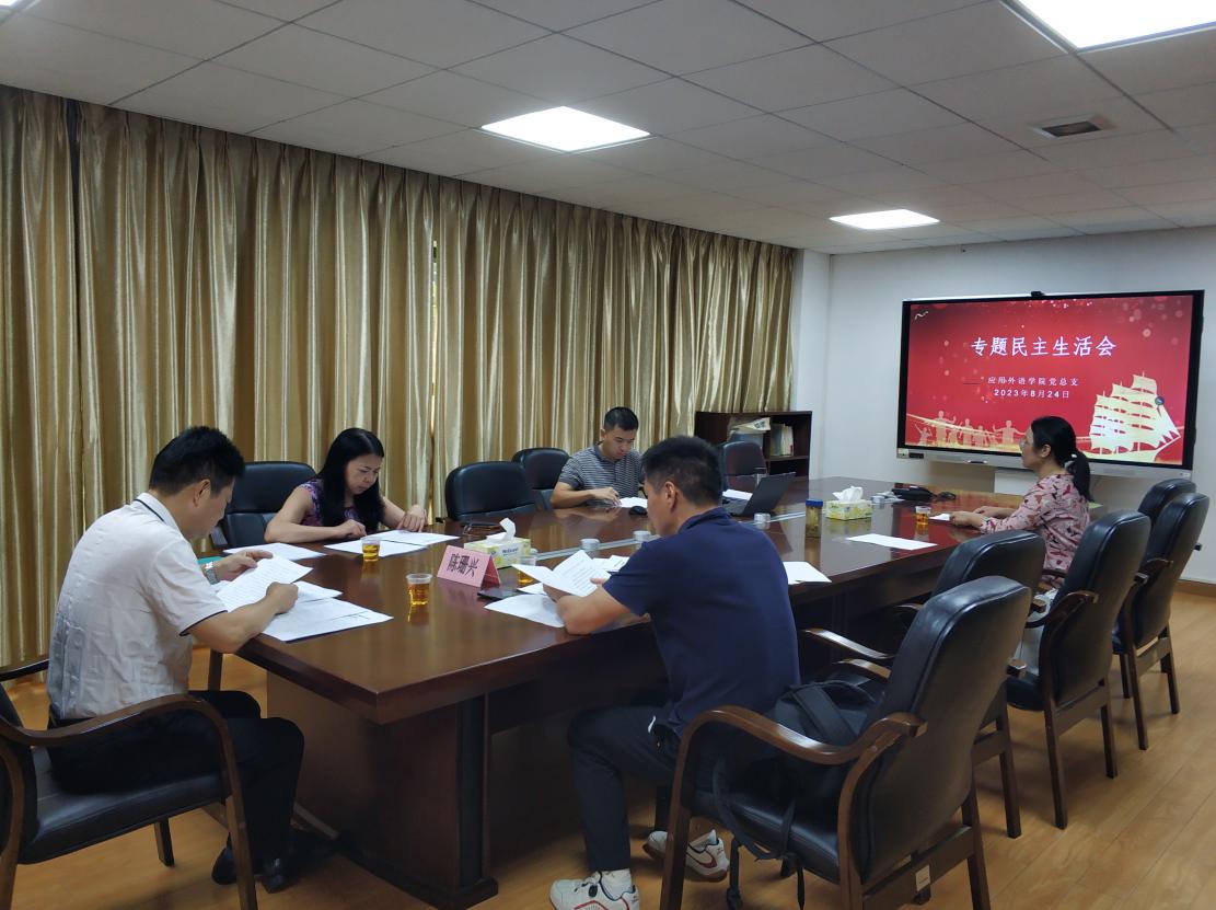 经前期充分准备及酝酿,8月24日上午,应用外语学院党总支在天河校区第一会议室召开学习贯彻习近平新时代中国特色社会主义思想主题教育民主生活会。学校党委委员、副校长陈珊兴,学院党总支临时负责人罗春科、院长彭枚芳出席,党总支支委列席。会议由罗春科主持。