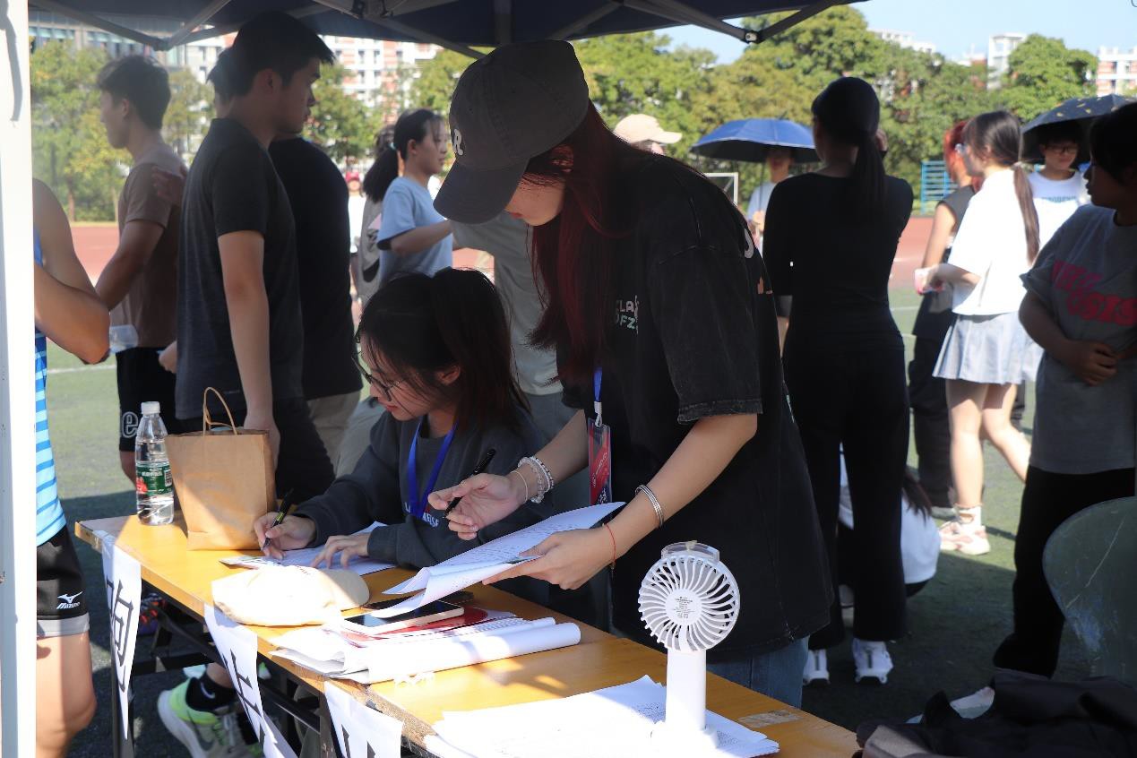 11 月 7 日,应用外语学院第十届运动会在白云校区田径场隆重举行。应用外语学院院长彭枚芳,学工办主任林耀佳,辅导员陈晓玲、冯锐骐、李迪、谭璇、许瑞如及2000多名同学参加了本次运动会开幕式。