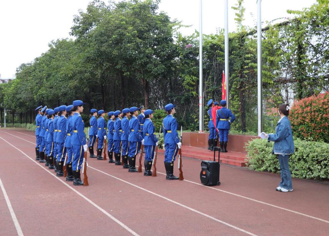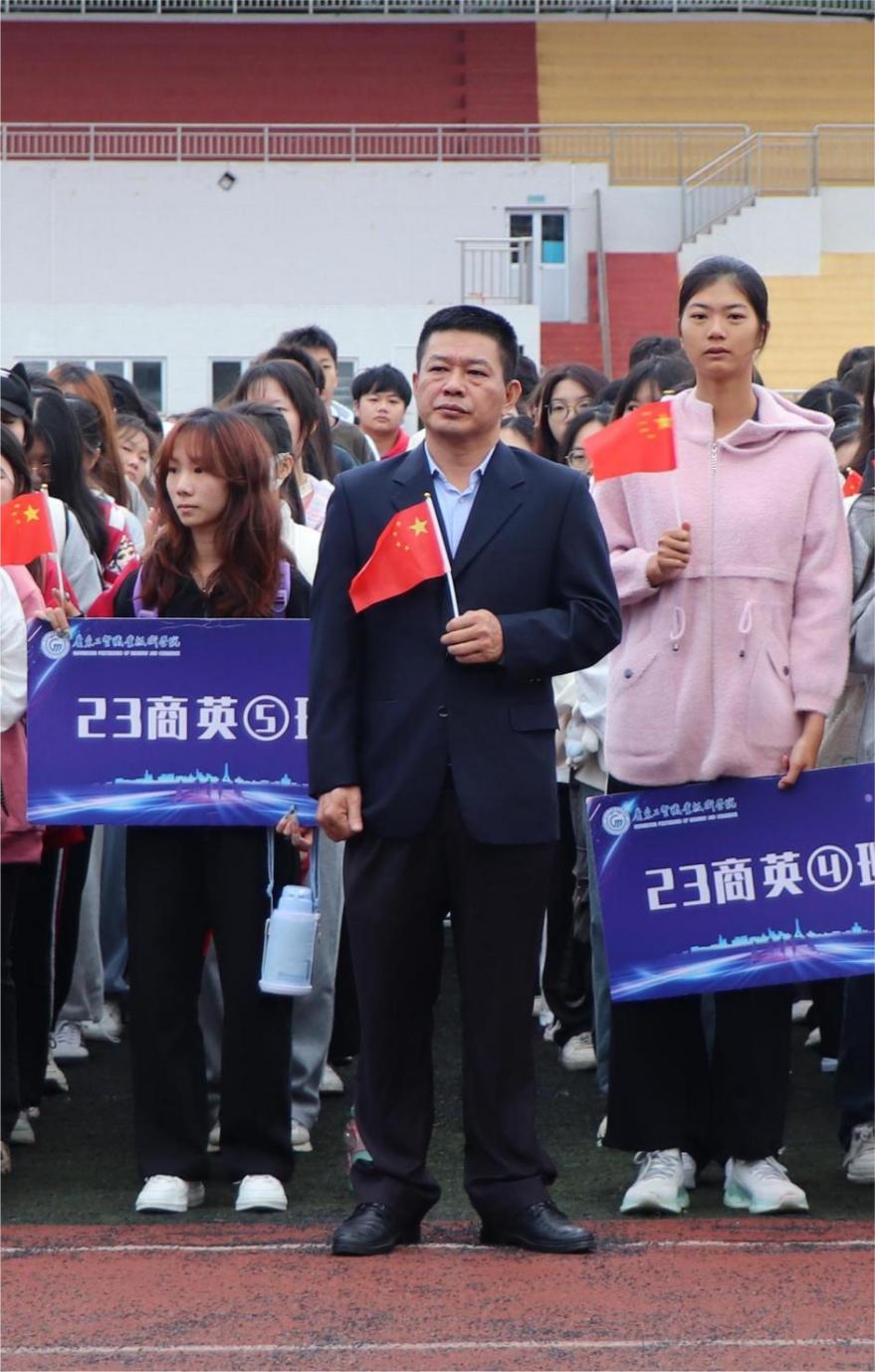 秋高气爽,晨曦微露。2023年11月13日早上,应用外语学院在白云校区田径场举行升旗仪式,学校党委委员、副校长唐毓秋,应用外语学院辅导员冯锐骐及全体学生参加本次升旗仪式。