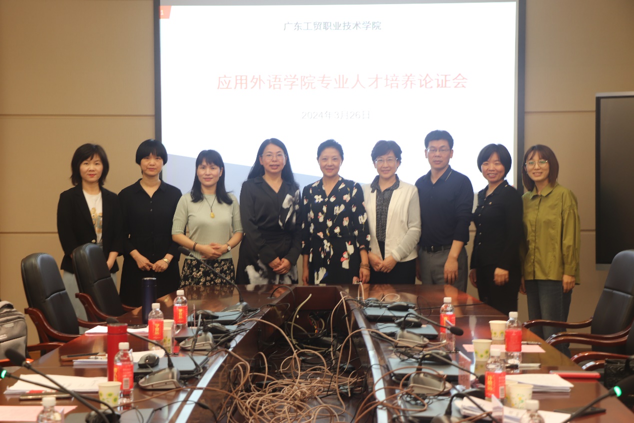 本次论证会邀请了广州工程技术职业学院外语商贸学院吴寒院长、广东水利电力职业技术学院外语外贸学院崔春萍院长、广东轻工职业技术学院应用外语学院章国军院长,以及线上参会的广东头狼教育科技有限公司朱加宝总经理与广州铁路职业技术学院外语商贸学院院长王友良教授。论证会推荐专家组组长为吴寒教授。