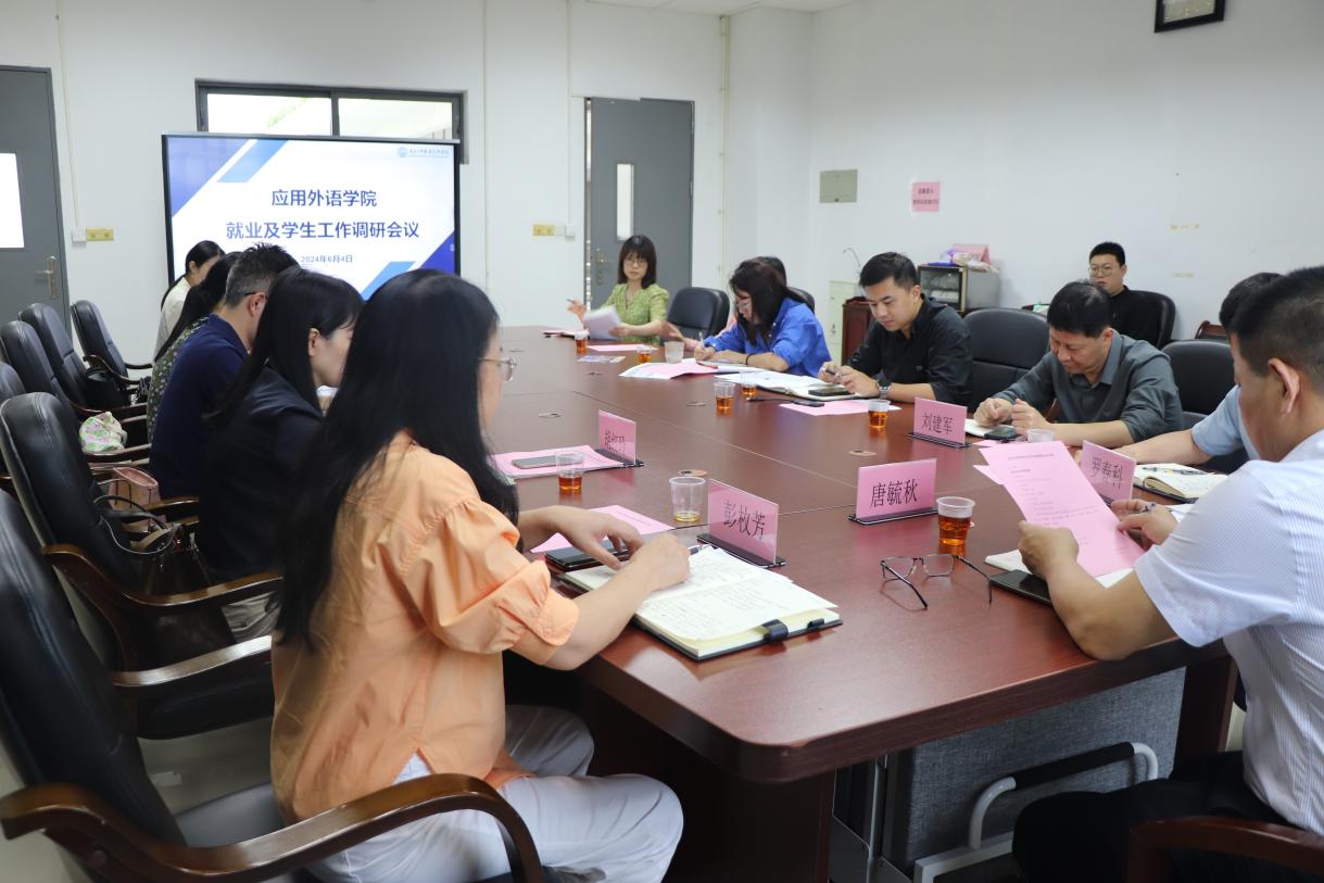 为全力推进学院毕业生更高质量更加充分就业,推动学生工作高质量发展。6月4日,应用外语学院在白云校区明德楼1-304召开学生工作座谈调研会。学校党委委员、副校长唐毓秋深入应用外语学院对学生管理及就业等工作进行调研。学生工作部部长刘建军、外语学院党总支临时负责人罗春科、院长彭枚芳、副院长胡红玲、学工办主任林耀佳及学院全体辅导员参加此次调研会。本次会议由罗春科主持。
