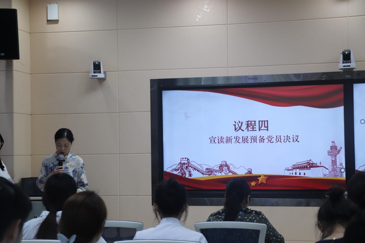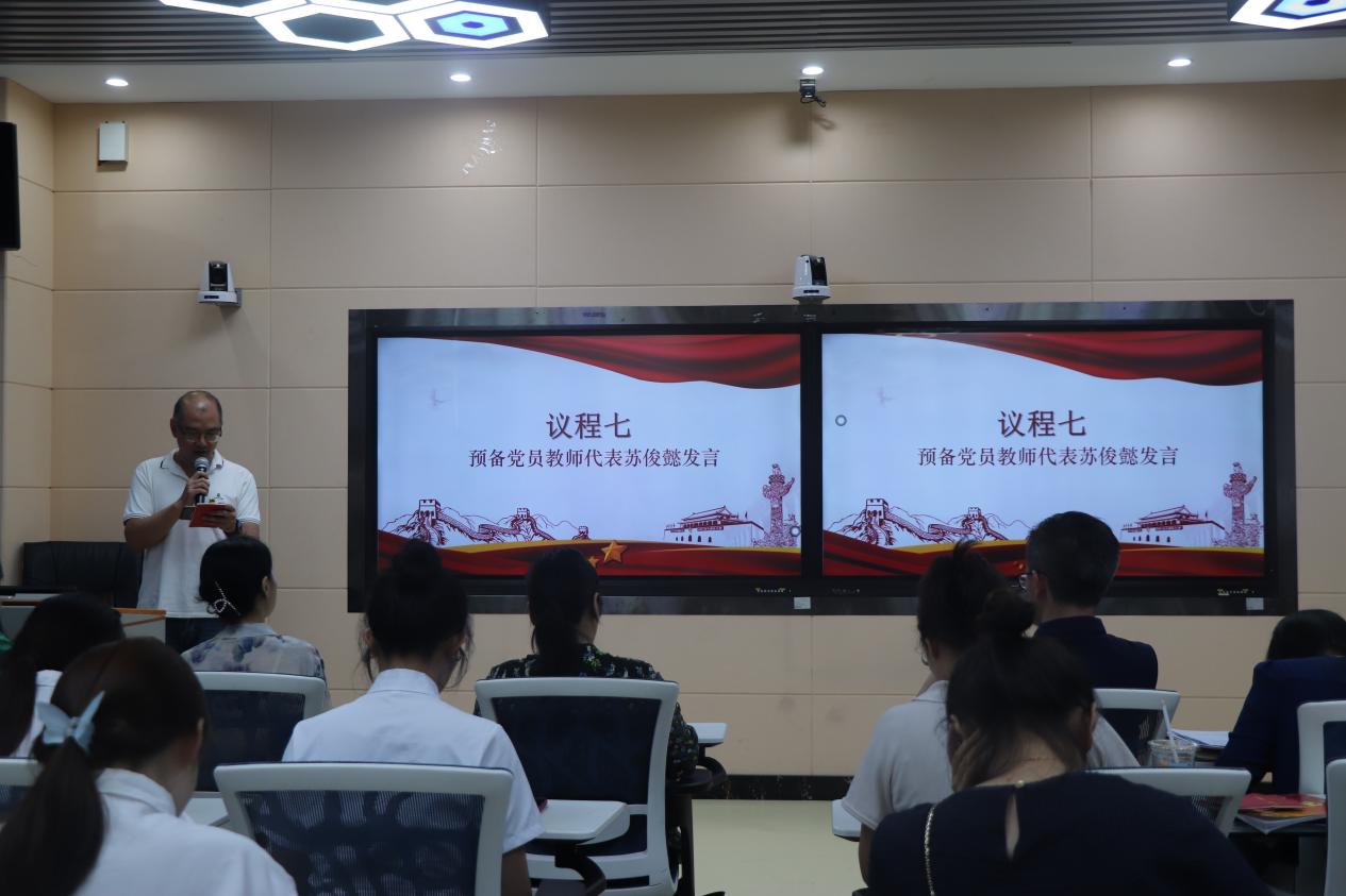 随后,新发展预备党员代表冯慧华同志发言,她表示在党组织对她的信任、关怀以及培养下,在入党介绍人和各位同志的关心和帮助下,自己对党的认识有了进一步加深,未来将继续按党员标准严格要求自己,不忘初心,牢记使命,努力成为一名合格的共产党员。新发展预备党员教师代表苏俊懿老师在发言中表示会充分发挥党员的先锋模范作用,促进学校各项工作的发展,为文明校园建设、维护学校稳定等各项工作献计献策。