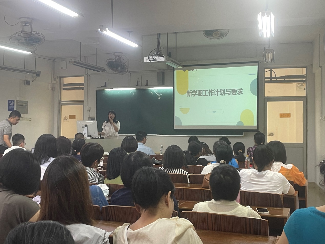 胡红玲向参会老师强调了新学期开学首日教学检查的相关事宜,并指出近期新生专业介绍的相关注意事项,同时提醒各位老师留意期末、期初检查要求。
