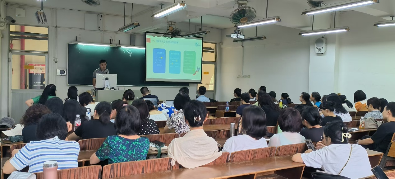 罗春科首先领学党的二十届三中全会精神,学习文件《中共中央关于全面深化改革、推进中国式现代化的决定》,并强调持续做好党纪学习教育,用典型案例提醒各位老师做好师德师风建设,抓好意识形态安全和校园安全工作建设。随后,他就近期开展学生就业工作及暑期”双百工程”工作进行总结,对外语学院师生获得的成绩进行肯定。最后,罗春科围绕新生心理问题、征兵就业问题、防诈骗和专插本规划等方面对新学期学生工作作出展望,鼓励各位老师积极指导学生参加创新创业大赛、职业生涯规划大赛等比赛。