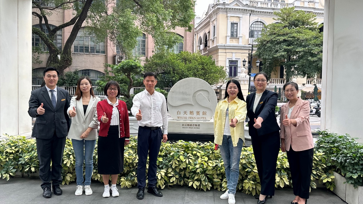 2024年11月19日,应用外语学院党总支书记罗春科、院长彭枚芳、旅游英语专业带头人徐秀玉以及旅游英语专业教师黄清霞、江娟一行,前往广州白天鹅宾馆,深入了解该酒店实习生的工作与生活情况,并与酒店管理层就校企合作进行了深入交流。