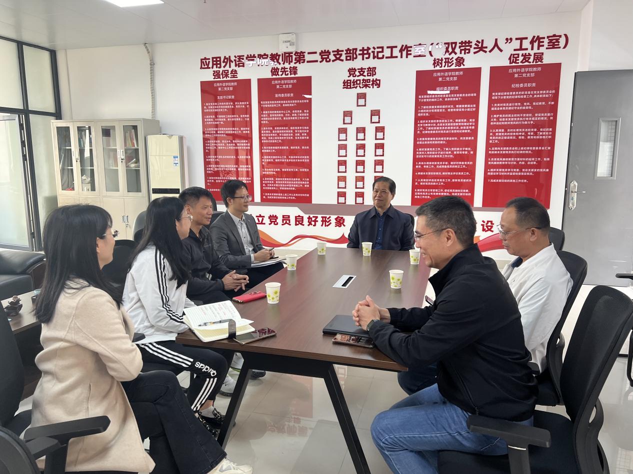 为贯彻领导干部联系基层工作制度,深入了解基层情况,提升二级学院治理水平与人才培养质量,推动学校事业高质量发展,2024年12月11日下午,学校党委书记何汉武在党政办公室主任吴浩、基建部部长曾庆生、总务部部长苏文杰等职能部门领导陪同下,赴应用外语学院考察调研和指导工作。