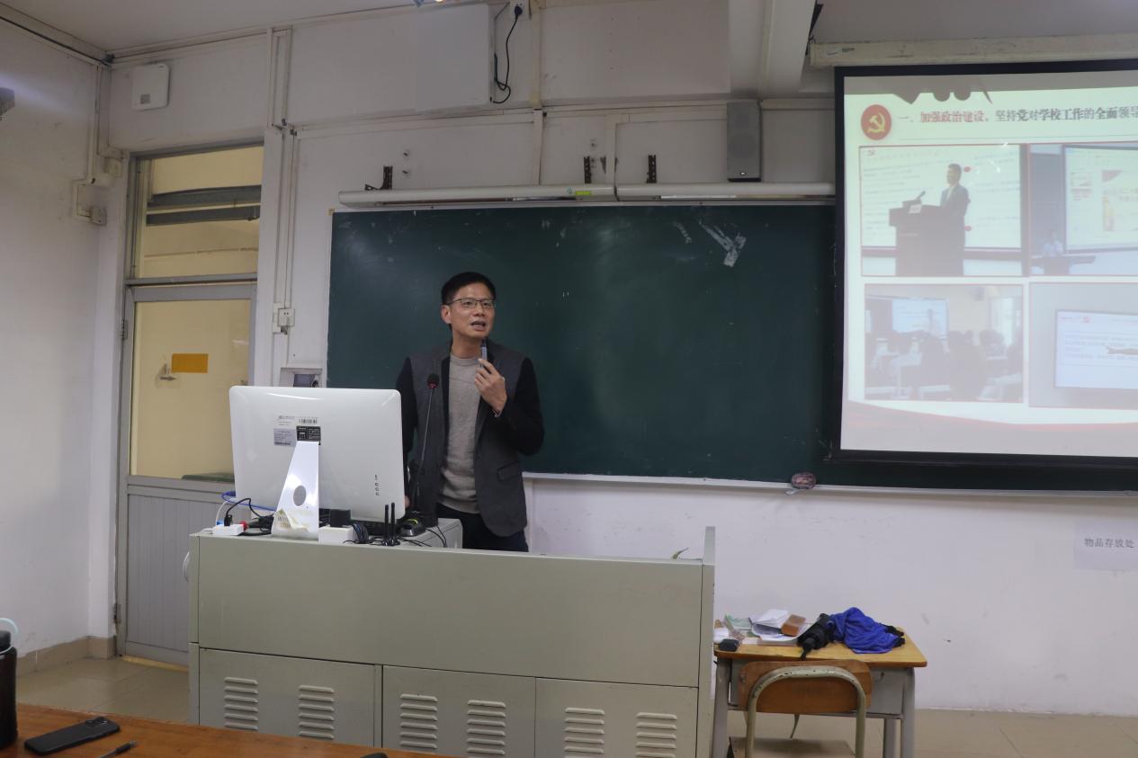 会上,罗春科书记首先引领全体参会人员进行“第一议题”学习,并着重指出,要坚定不移地推动教育综合改革向纵深发展,全面提升教育质量与效益 。随后,他对学院党建工作进行总结:在加强政治建设方面,学院始终坚持党对学校工作的全面领导,积极开展党纪学习教育,不断强化党员干部的纪律意识;在思想政治教育和意识形态工作上,学院持续发力,确保正确的思想导向;通过党建引领,支部充分发挥政治核心作用,推动中心工作,落实 “双融双促”,有效促进了党建与业务的协同发展。同时,学院注重加强党员队伍建设,党员先锋模范作用得到充分发挥;在贯彻落实省委 “1310” 具体部署方面,学院积极行动,增强基层党组织政治功能和组织功能。最后,罗书记也指出了目前存在的问题,并针对这些问题,他提出要强化政治引领,凝心聚力,打造一支高素质的外语团队,进一步创新党建业务联动机制。
