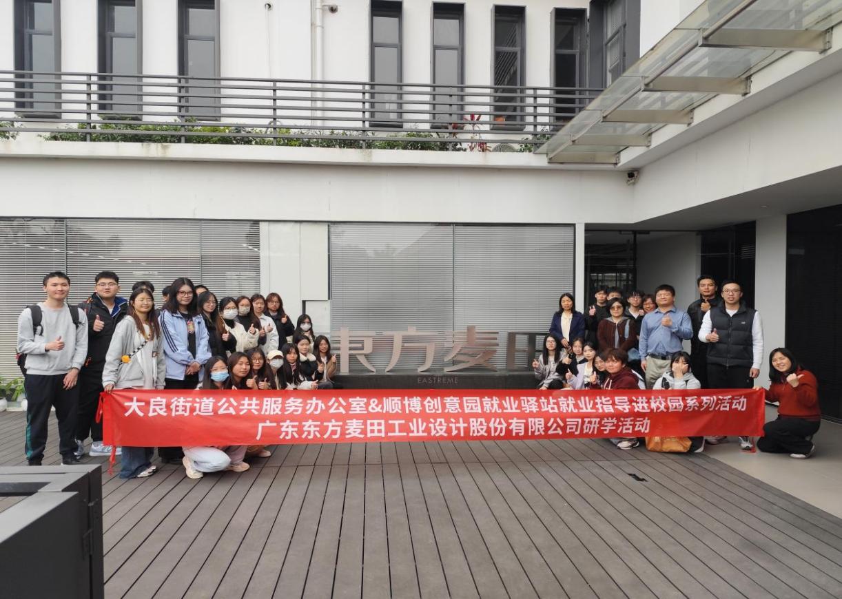最后,师生一行参观了广东东方麦田工业设计股份有限公司。一进大门,同学们就被公司园林设计和现代化工位布置所吸引。公司负责人趁热打铁,向同学们介绍了公司业务范围和员工招聘需求,并带大家参观各部门工作环境,解答同学们的提问。
