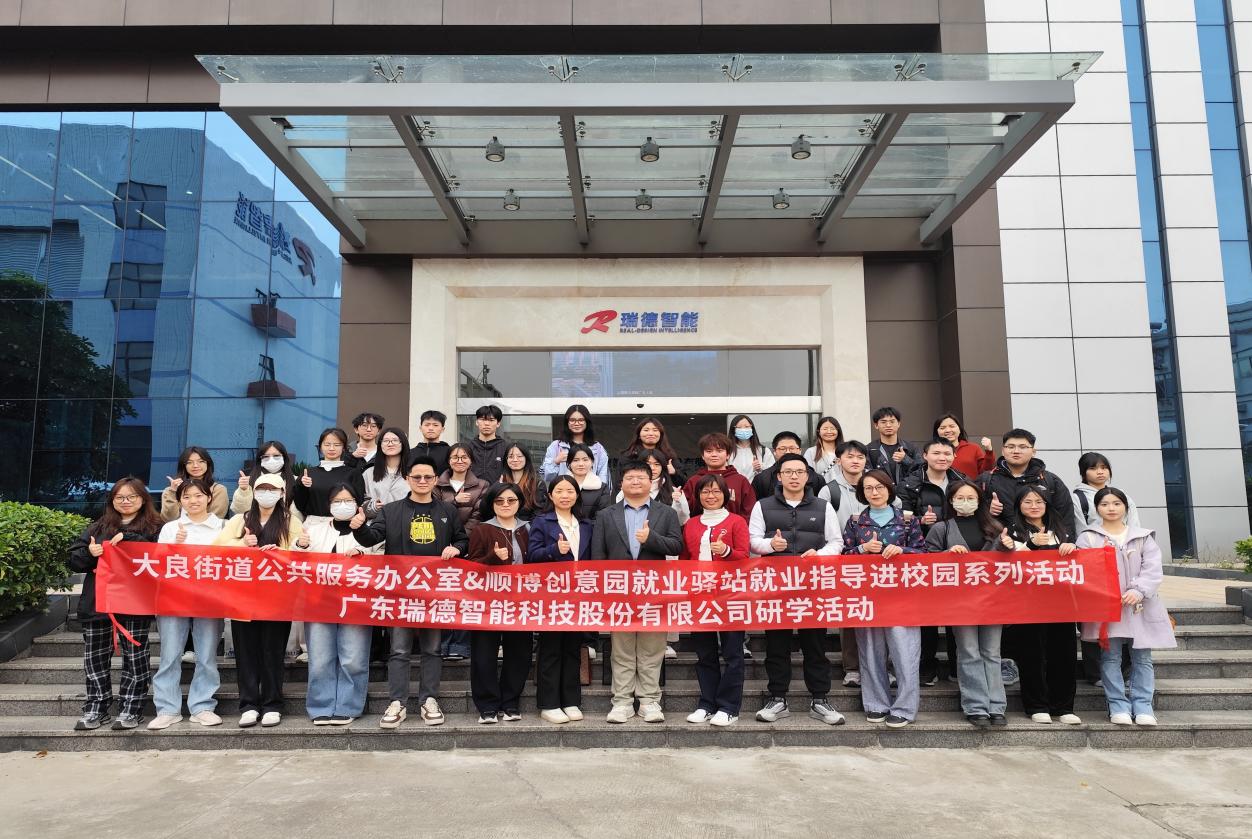 随后,师生一行坐车前往广东瑞德智能科技股份有限公司参观。公司人事部覃经理带领同学们参观公司产品展示厅和大会议厅,了解公司产业方向、观看公司宣传视频,介绍公司岗位和晋升渠道和福利待遇。最后带领大家参观员工宿舍区,让同学们亲身体验员工生活。