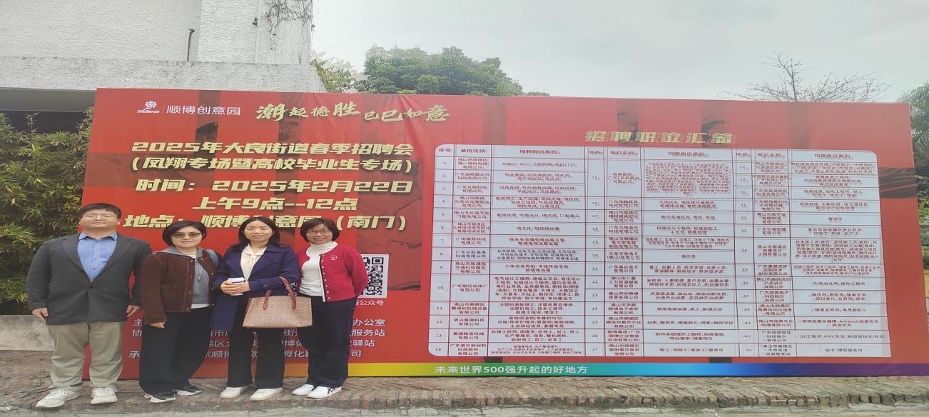 为给毕业生提供高质量就业渠道,促进毕业生积极就业,2025222日,经应用外语学院牵头组织策划,由应用外语学院王宗喆、雷莹、黄清霞、叶夏四位教师带领应用外语学院、经济贸易学院、机电工程学院毕业班学生参加大良公服办和顺博创意园就业驿站联合举办的2025年大良街道春季招聘会(凤翔专场暨高校毕业生专场)。