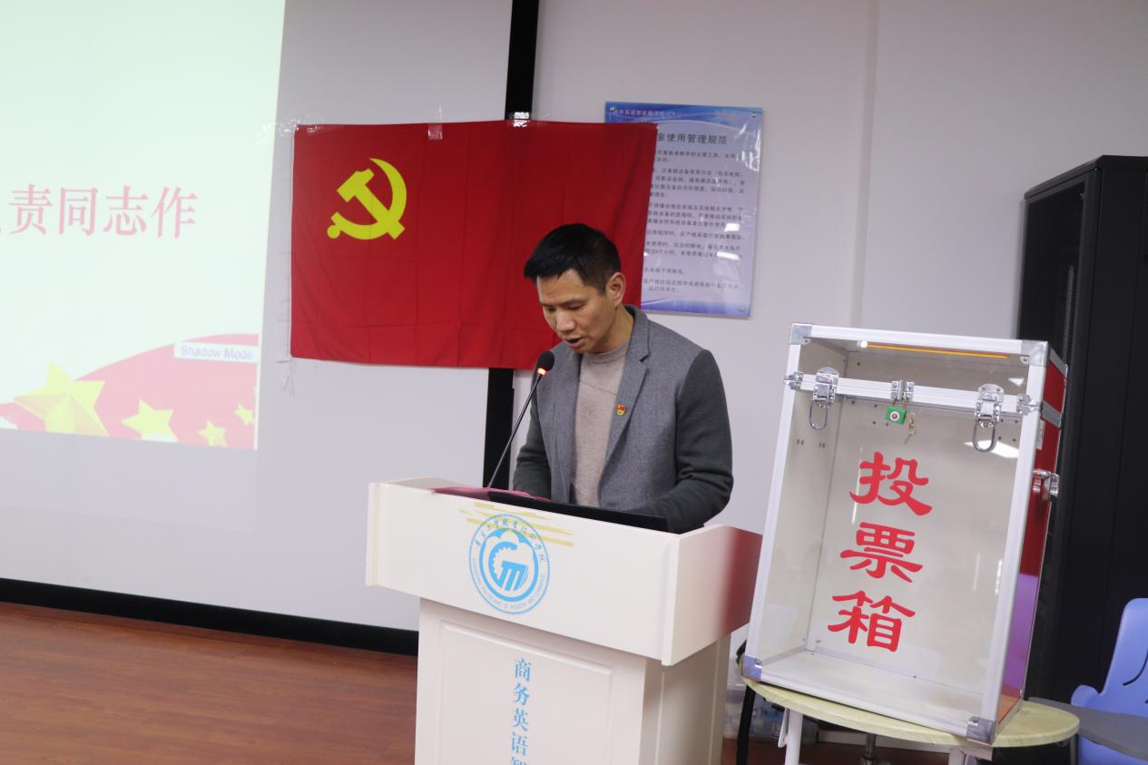选举结束后,新一届支部委员会立即召开了第一次会议,选举产生了党总支书记、副书记,并对委员职责进行了明确分工。选举结果随后向大会通报。罗春科同志代表新一届支部委员会表态,新一届支部委员会将始终坚持以党的先进理论为指导,加强自身建设,不断提升政治素养与业务能力;积极探索党建与教育教学深度融合的有效路径,团结带领全体师生,为培养更多优秀的外语专业人才而努力奋斗。