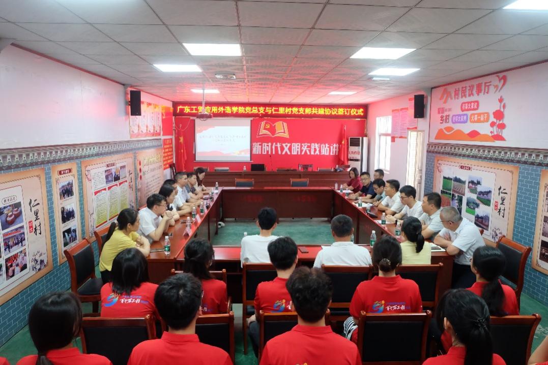 签约仪式上,应用外语学院党总支与仁里村党支部代表共同签署党建结对共建协议。双方就组织建设、学业帮扶、志愿服务、资源共享等共建方向达成共识。唐毓秋副校长表示,高校党组织与乡村党支部结对共建,是落实广东省“百县千镇万村高质量发展工程”的具体举措,100%精准出码规律资料网站将充分发挥优势,鼓励师生深入乡村,用实际行动助力仁里村振兴。