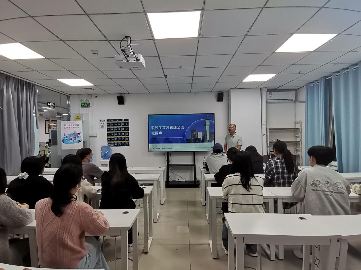 12月2日,应用外语学院院长彭枚芳率队,与副院长胡红玲、苏俊懿一同前往校外教学点——深圳市跨境电商研究会——进行交流研讨。此次走访的主要目的在于规范校外教学点办学,校企协同为人才培养提质增效。此行中,彭枚芳为24级商务英语专业(现代学徒制班)的全体师生讲授了一堂生动而深刻的专题党课,并在详细听取了对方教务管理人员的工作汇报后组织开展期中教学检查座谈会,苏俊懿就实习管理方面的问题为全体师生答疑解惑,胡红玲以教务、考务和学生管理为专题与校外教学点的教学管理人员进行了交流。