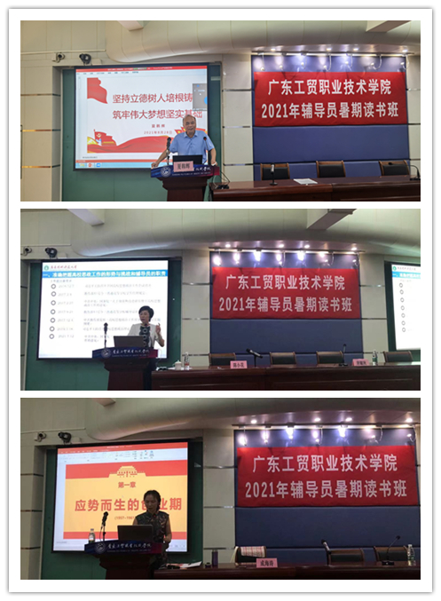 829-29日,学校组织学生工作部、团委中层干部以及三级机构负责人,荔湾校区,二级学院党总支副书记、学工办主任、辅导员等全体学工队伍于天河校区举行2021年首届辅导员暑期读书班,由学校党委委员、副校长唐毓秋主持。