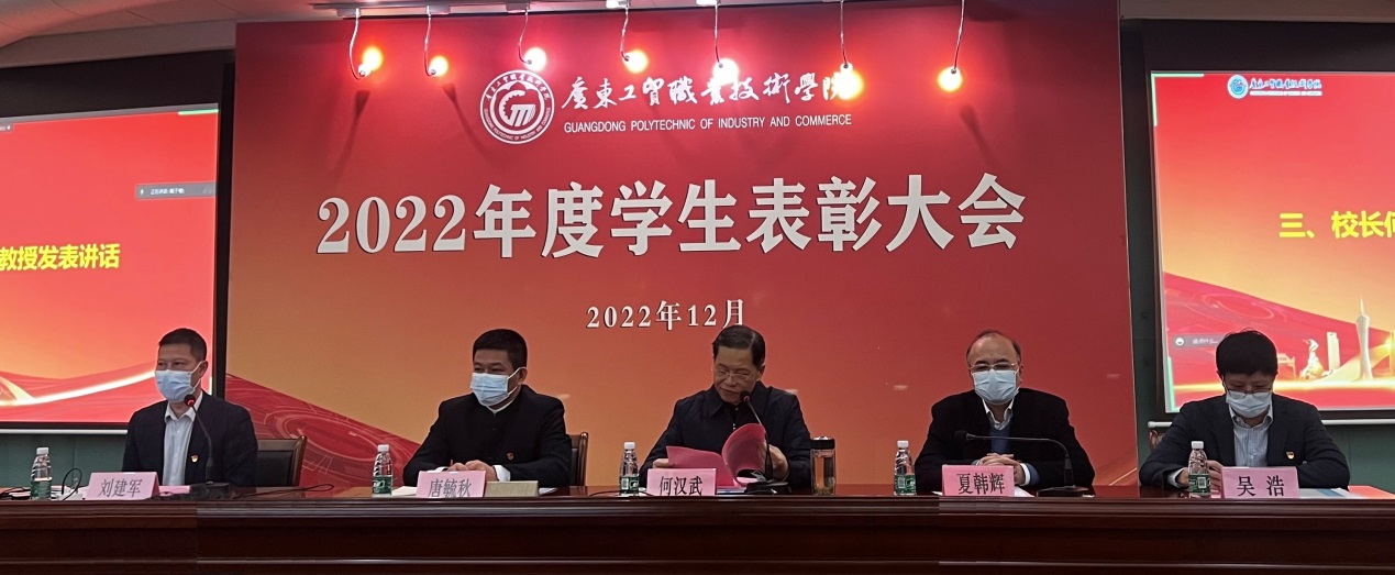 12月9日上午,学校在天河校区线上线下同步形式举办“聚云端表彰 展榜样力量”为主题的2022年度学生表彰大会。学校党委副书记、校长何汉武,党委副书记、纪委书记夏韩辉,党委委员、副校长唐毓秋,学校办公室、教务处、学生工作处、团委负责人和各二级学院党总支书记、副书记现场参会。学校获奖师生代表近300人线上参会。