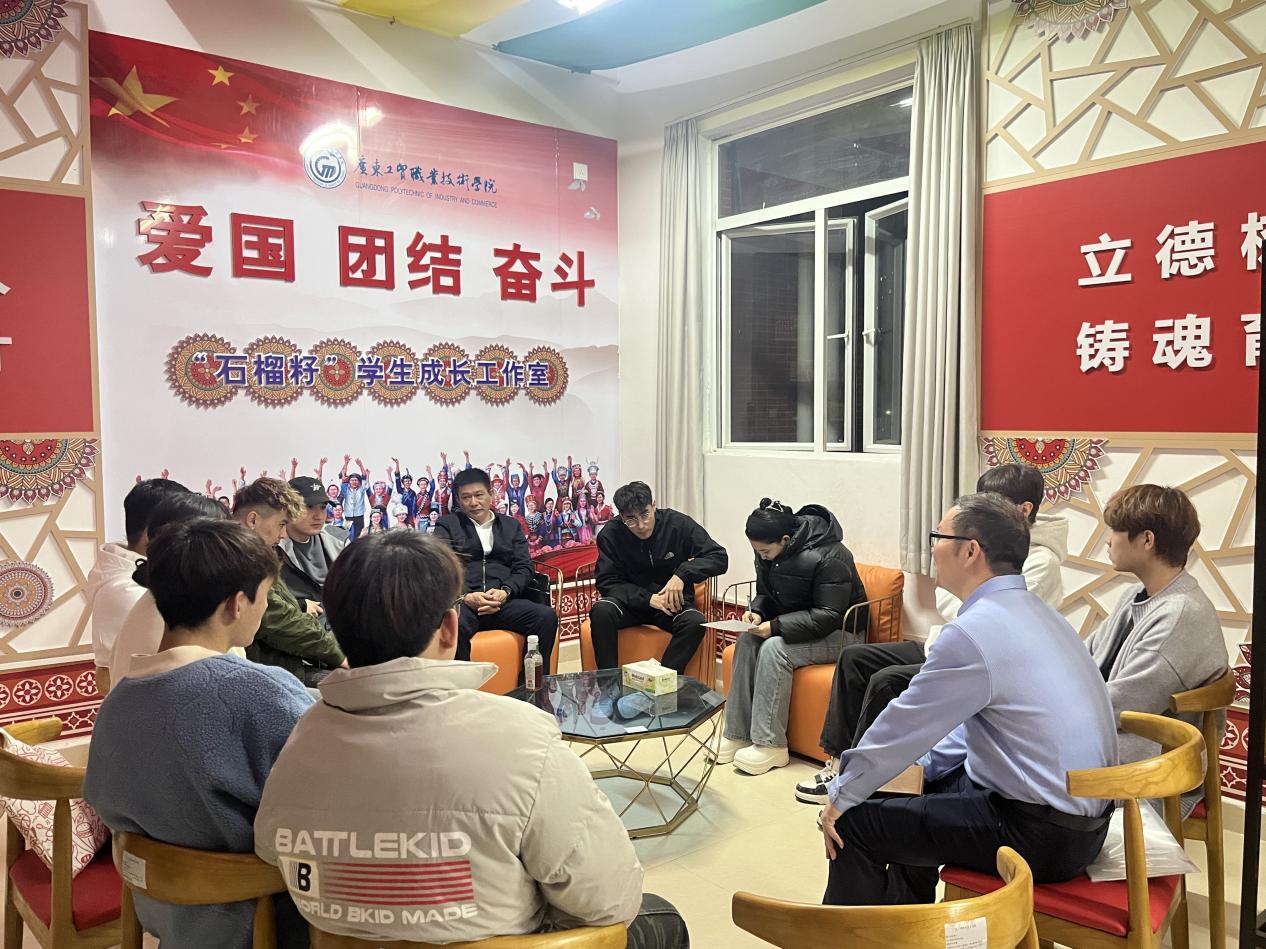 在座谈过程中,学生代表们分别从学习、服务、生活及民族文化等多维度分享了大学经历与感悟,表达了对广州的热爱,称赞了优美的校园环境、浓厚的学习氛围及和谐的民族团结氛围,畅谈在广在校的生活感受和日常学习生活中面临的问题,并就升学、就业和人生规划发展展开讨论。