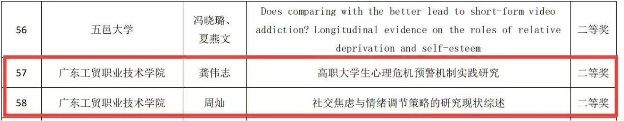 会议对高校心理健康领域取得成就的集体和个人进行了表彰。我校荣获“2024-2025年度广东省高校心理健康教育与咨询工作先进集体”称号,1位教师获“2024-2025年度广东省高校心理健康教育与咨询工作先进个人”称号,1位教师获“2024-2025年度广东省高校心理健康教育与咨询工作优秀论文”一等奖,2位教师获二等奖,2位教师获三等奖。