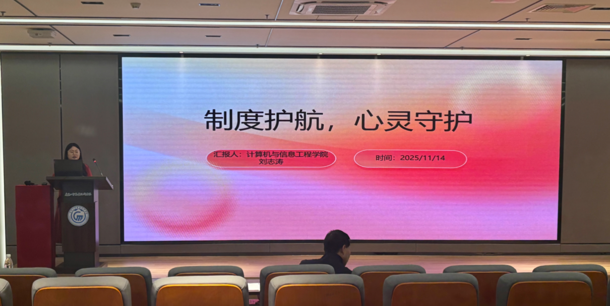 在二级心理辅导站工作及案例分享环节,刘建军依次邀请相关学院代表发言。首先,计算机与信息工程学院刘志涛老师以“制度护航,心灵守护”为主题,介绍“宿舍长 — 心理委员 — 辅导员 — 学生工作副书记 — 心理咨询中心”五级上报机制,通过实际案例复盘,强调早发现与家校协同在危机干预中的关键作用。