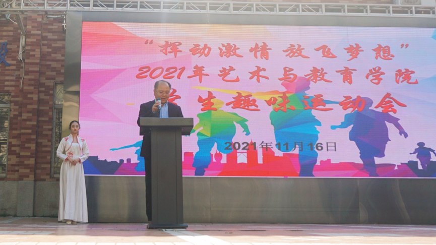 为全面贯彻习近平总书记关于建设体育强国的重要论述,响应教育部的号召,开展阳光体育运动,丰富校园文化生活,艺术与教育学院于2021年11月16日下午在荔湾校区操场成功举办艺术与教育学院首届学生趣味运动会活动。艺术与教育学院党总支副书记叶宜同、副院长张幼晖出席了本次活动,学工办主任谭武主持。