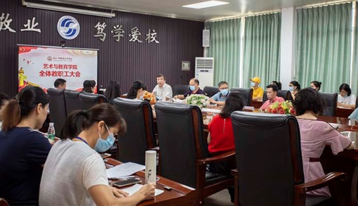2021年9月3日下午,艺术与教育学院在荔湾校区敬业楼507会议室召开全体教职工大会,这是艺教学院新成立以来举行的首次全体成员会议,会场洋溢着兴奋喜悦的气氛。
