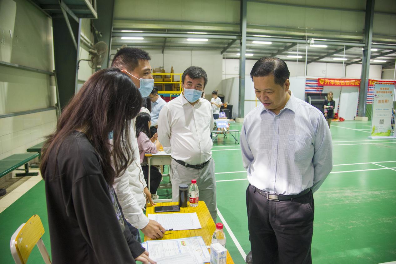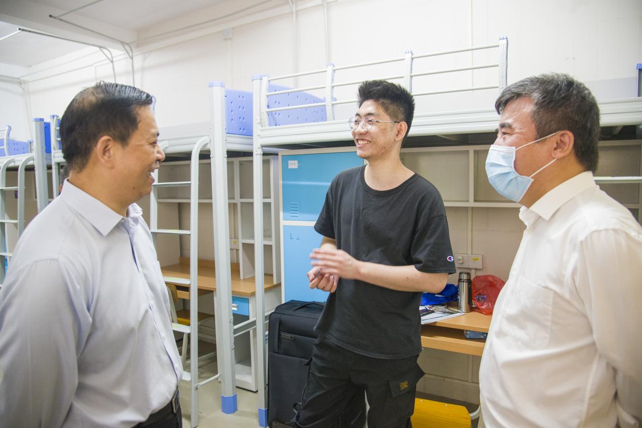 迎新当天上午9:00,何汉武校长来到荔湾校区视察迎新工作,许日就副校长,校办吴浩主任,艺教学院沈彬书记、叶宜同副书记、张幼晖副院长全程陪同视察工作。何汉武校长现场察看了荔湾校区的迎新服务、学生宿舍、教学楼等场所,并对工作人员给予了鼓励和赞扬。