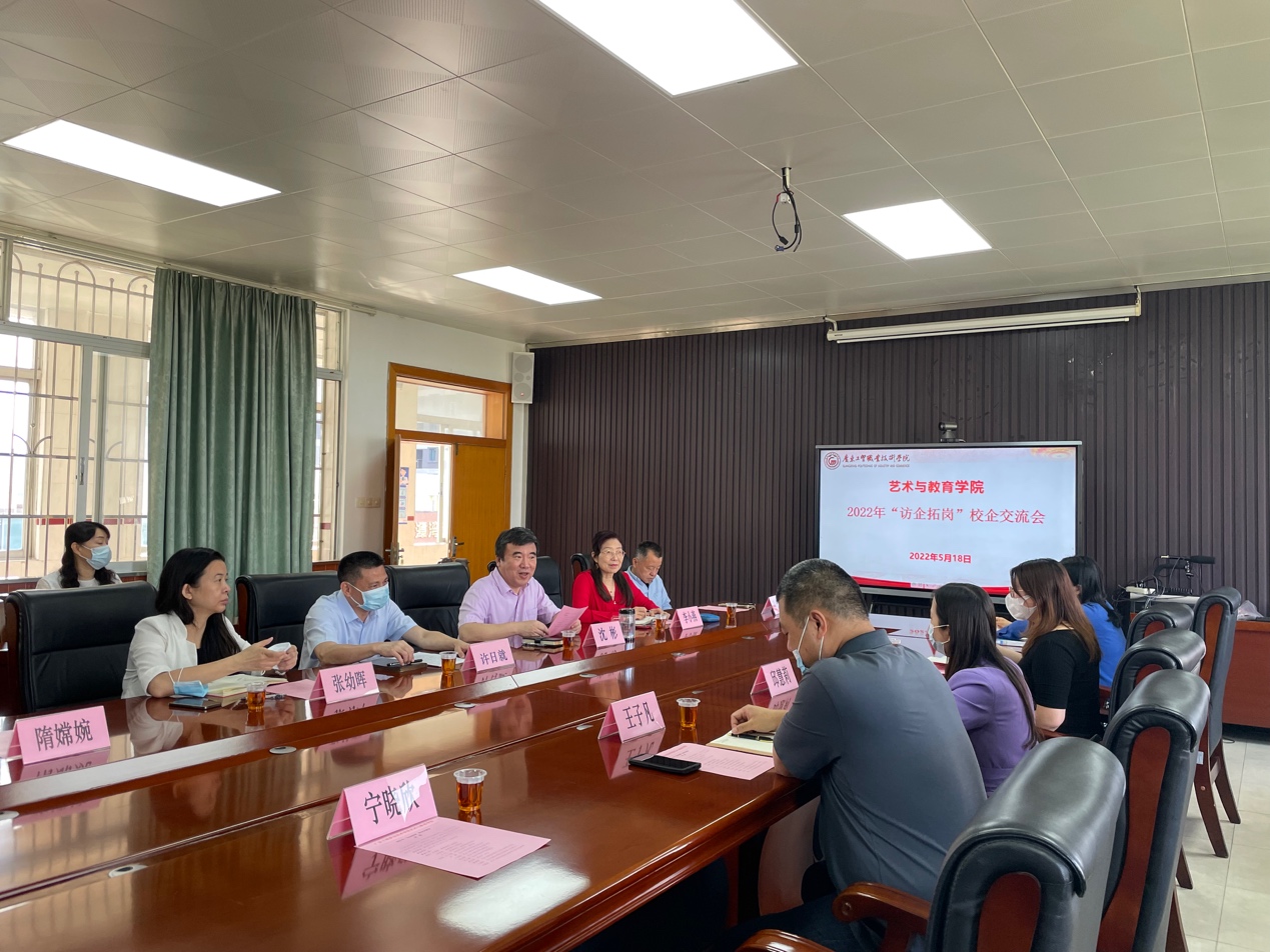 为贯彻落实党中央、国务院关于高校毕业生就业工作的决策部署,为贯彻落实《职业教育法(修订)》,全面深化校企合作、推进产教融合育人,将校企双方合作共赢的局面推上一个新台阶,艺术与教育学院于5月18日上午在荔湾校区敬业楼507会议室举办了以“访企拓岗促就业”为主题的校企交流会。广东工贸职业技术学院党委委员、副校长许日就,艺术与教育学院党总支书记沈彬、副院长张幼晖、副院长李小燕、实训中心科长谢志强、艺术设计教学系主任隋嫦婉、学前教育专业带头人王丽丽、学前教育专业骨干教师宁晓欣以及三位知名企业代表凯粤湾幼儿园院长邱慧莉、星语特殊儿童教育机构校长王子凡和鹅潭湾幼儿园区键霜主任参与了会议。