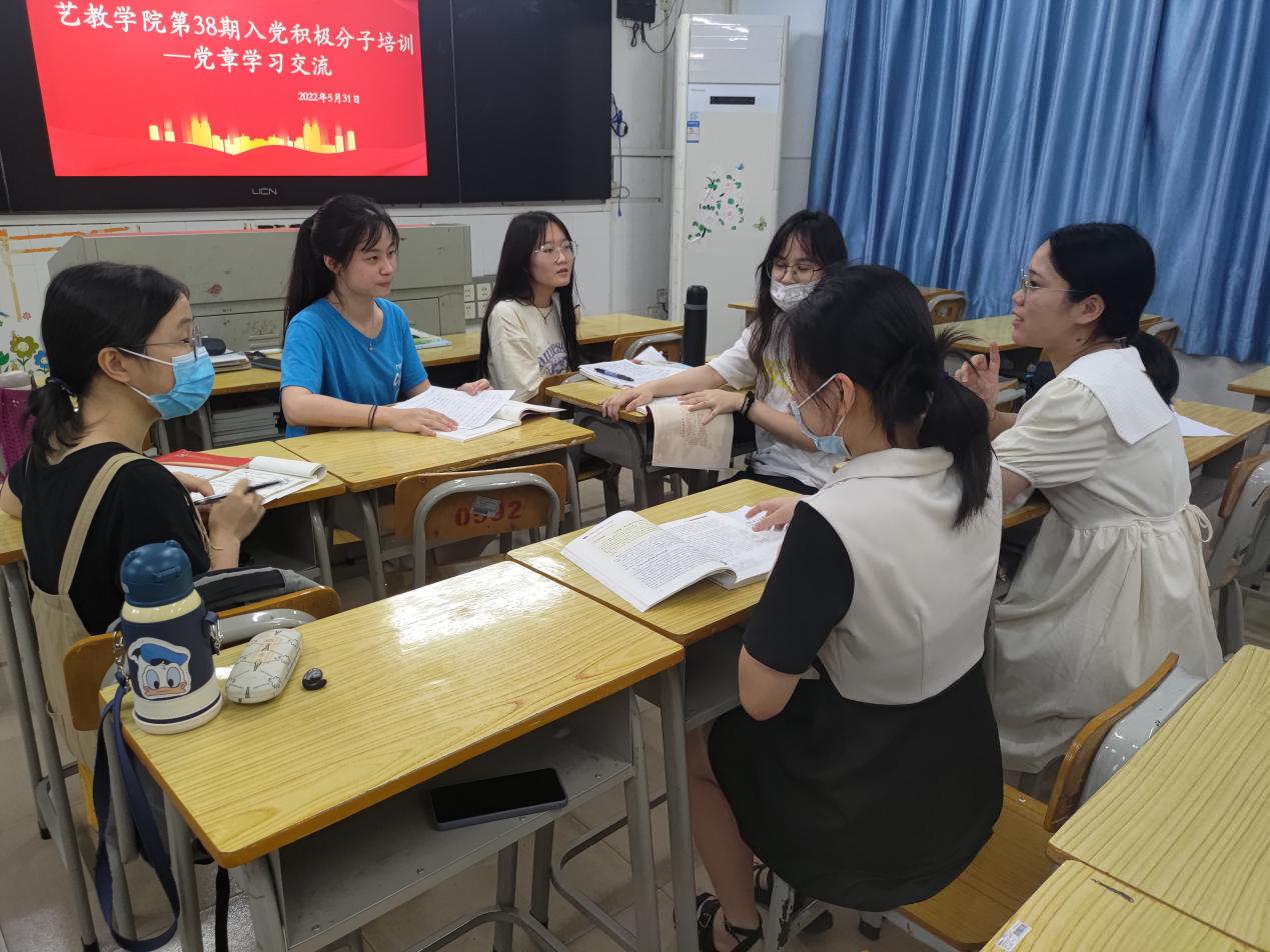 为深入贯彻落实习近平总书记关于党章的重要论述有关精神,进一步增强入党积极分子对党章的认识,艺术与教育学院学生党支部于5月31日在爱校楼403组织全体入党积极分子开展党章学习交流活动。