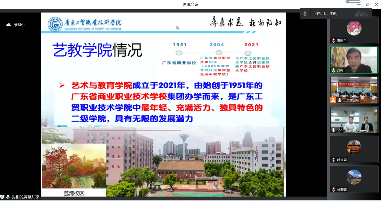 为积极开拓就业岗位,推进校企协同育人,多措并举全力促进毕业生更加充分更高质量就业。11月25日上午,艺术与教育学院在荔湾校区敬业楼507会议室通过线上会议的形式召开了“访企拓岗”校企交流会。党委委员、副校长许日就、艺术与教育学院党总支书记沈彬、副书记叶宜同、副院长李小燕、副院长张幼晖、学工办主任谭武、教学系副主任林燕銮、辅导员覃映月、莫华成,何李活内容电商(广州)有限公司CEO李佐生、人事行政经理周庆林先生出席了本次交流会,会议由副院长张幼晖主持。