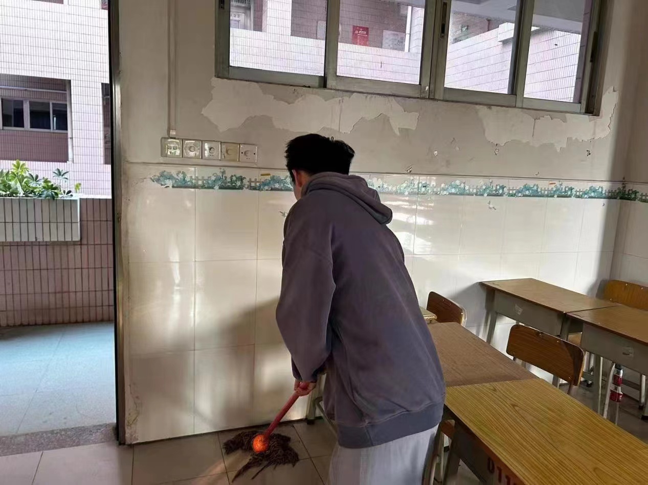 宿舍卫生大整理活动主要目的是着眼于宿舍文化、内务、环境等方面,希望通过宿舍卫生大扫除活动,进一步强化学生的劳动意识,保障寝室的生活环境,促进宿舍学习氛围。活动期间,同学们热情高涨,积极参与,宿舍长带头行动,全员参与对宿舍进行全面打扫,彻底消灭卫生死角,确保寝室不留盲区。