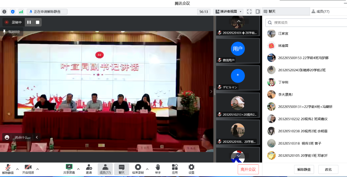 最后,辅导员莫华成作征兵宣讲,他从应征入伍的基本条件、大学生应征入伍优待政策、退役士兵优待政策等几个方面,向同学们分享大学生征兵相关政策。通过此次分享,同学们进一步了解参军入伍的相关要求,明确了征兵入伍的程序。青年强则国家强,希望广大学子不负青春、不负韶华、不负时代,期待有更多的艺教学子参军报国,投身火热军营,磨砺精彩人生,努力为实现建军百年目标和中华民族伟大复兴贡献青春力量!