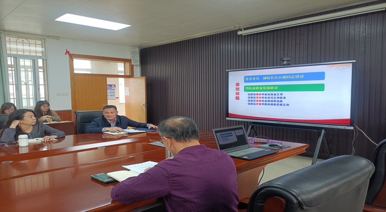 本次研讨会务虚与务实相结合,随后展开的研讨着重围绕高质量推进毕业生就业工作、高质量落实学生实习工作要求、高质量谋划专业建设和发展、高质量开展实训室管理工作等四个方面进行。