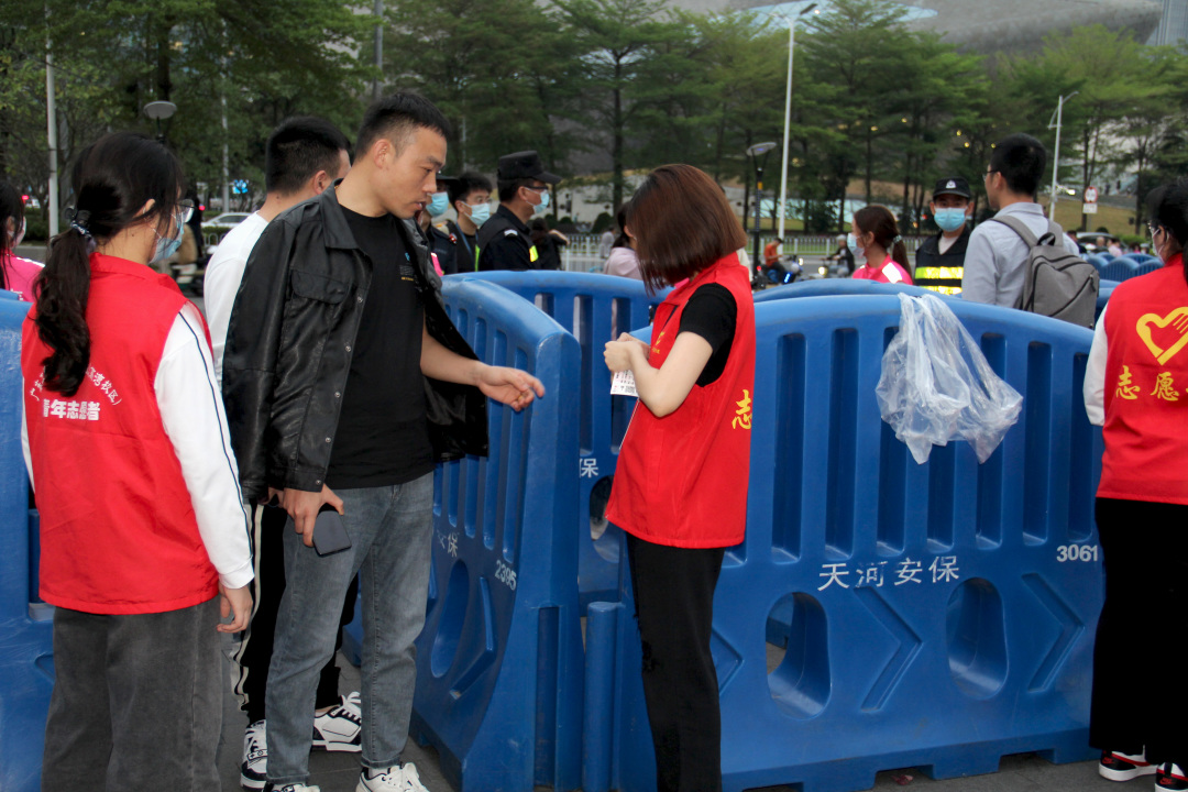 在音乐会检票处,志愿者们认真核对票证信息,热情周到地回答观众提出的问题,大大提高了观众进场效率。