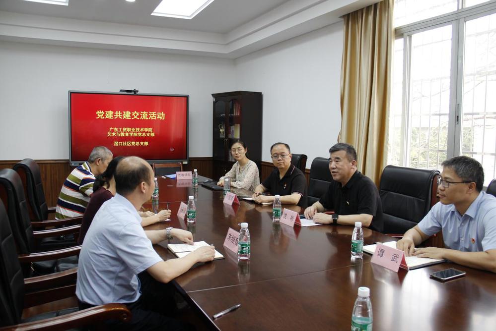 为进一步加强党建工作,促进基层党组织与社区单位基层党组织的联系、互动,进一步提升党建工作整体水平,以高质量党建引领学院高质量发展,艺术与教育学院党总支部于4月21日与滘口社区党总支部开展了党建工作校地共建交流活动。艺教学院党总支书记沈彬、副书记叶宜同、学生党支部书记谭武,滘口社区挂点领导街道武装部部长朱继智、滘口社区党总支书记方燕霞等出席了活动。