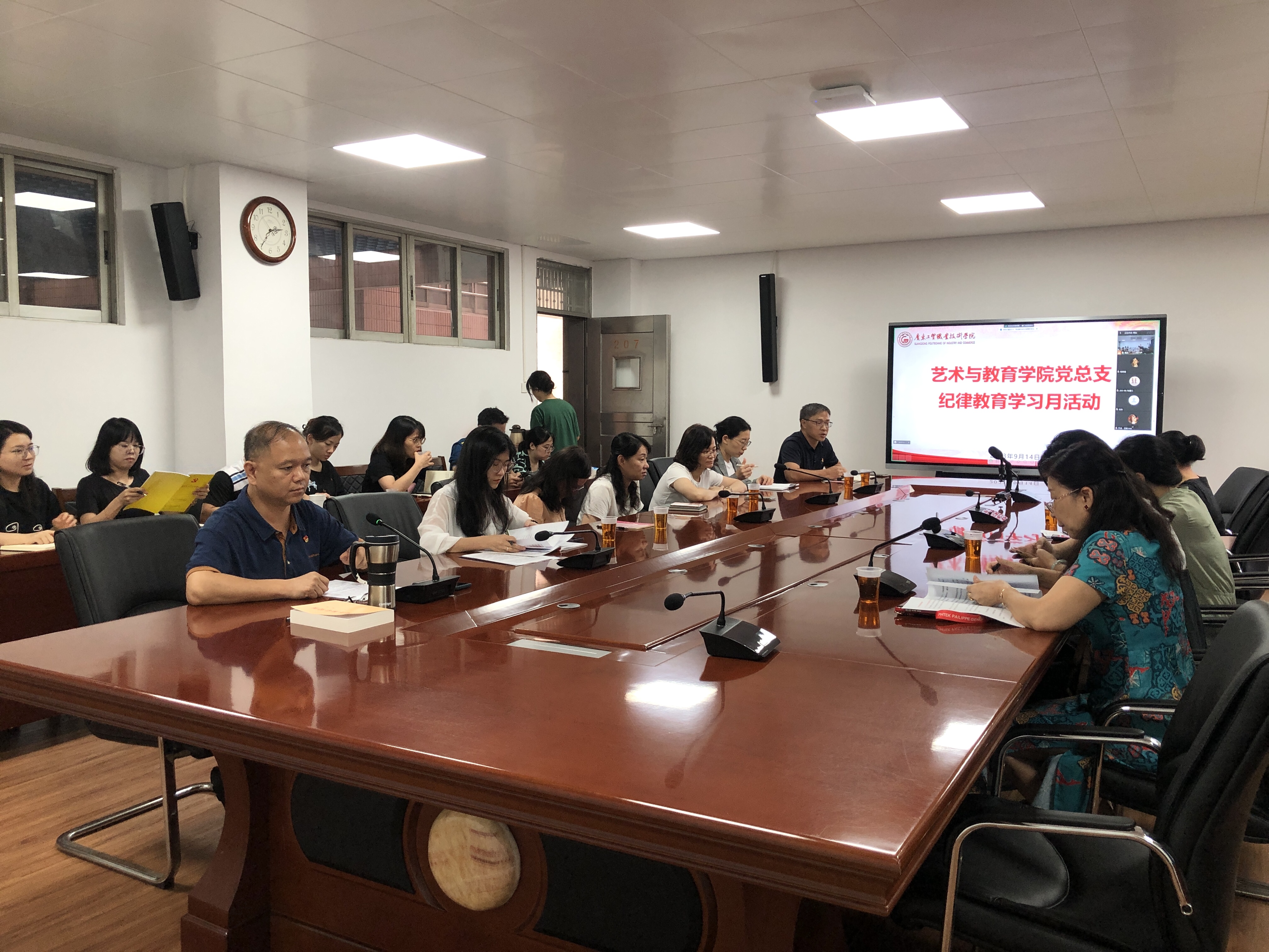2023年9月14日下午,艺术与教育学院党总支组织开展纪律教育学习月活动,进行理论学习和警示教育。主会场设在笃学楼207会议室,小部分党员线上参加。会议由艺教学院党总支纪检委员谭武同志主持。