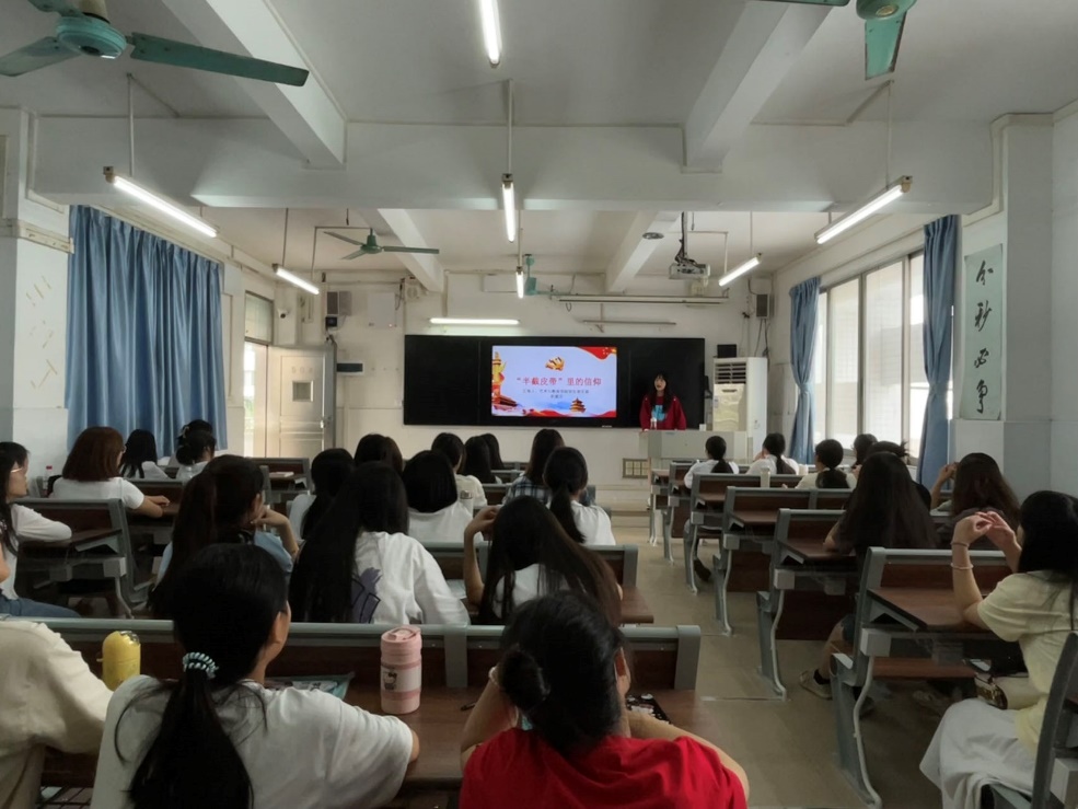 彭盛兰给同学们宣讲了“半截皮带”的故事。她跟同学们说到,吃皮带其实是万般无奈之举,但是长征中的红军战士们却表现出了革命乐观主义精神,草根、树皮、皮带都是难以下咽的东西,是信仰支撑着红军战士们把这些难吃的东西,嚼烂吃下,一根小小的皮带验证了红军战士伟大与坚韧。她强调,半截皮带见证了红军长征时的艰苦卓绝,见证了红军战士“铁心跟党走”的坚定信念。这就是信仰的巨大力量!